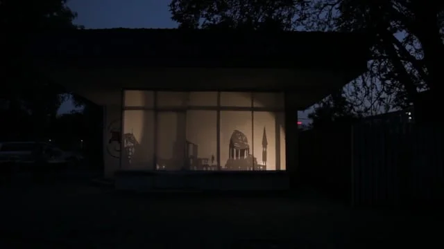 Uncommon Shadows was an urban intervention created for One Architecture Week in Plovdiv Bulgaria. Responding to a theme proposed by the festival curators, Mere Phantoms created an interactive shadow box inside an abandoned gas station right at the Maritsa River bank. Lit from within the space, the façade of the gas station transformed into a projection box.